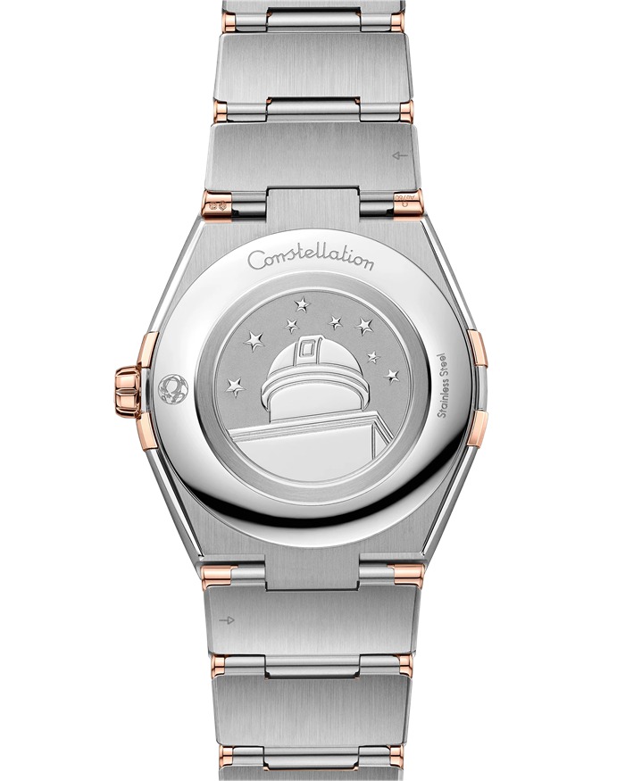 Este modelo de 36mm em aço inoxidável e ouro Sedna™ de 18K apresenta luneta gravada com algarismos romanos, mostrador creme-prateado com padrão de seda gravado em relevo e janela de data às 6horas. Os ponteiros, o logótipo OMEGA, a estrela Constellation e os índices são todos em ouro Sedna™ de 18K.