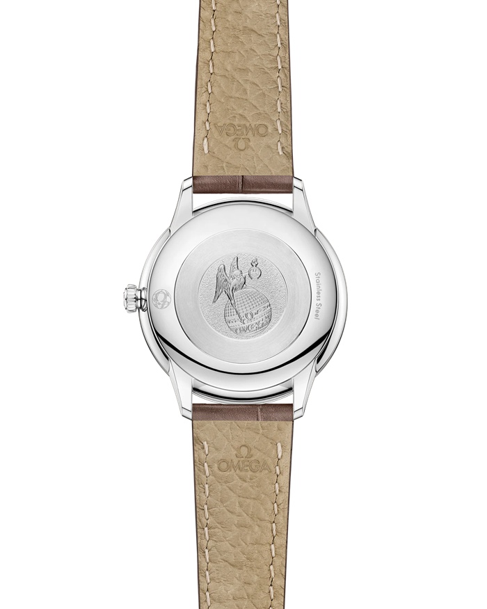 Neste modelo de 27,5 mm em aço inoxidável, o mostrador cor de linho em PVD apresenta um padrão vertical aleatório estampado num acabamento escovado. O mostrador distingue-se pelos ponteiros revestidos a ródio, bem como pelos algarismos romanos alternados e os índices em diamante. O aspeto simples do relógio é completado por um fundo de caixa integral com uma gravação do medalhão do Deus Chronos.