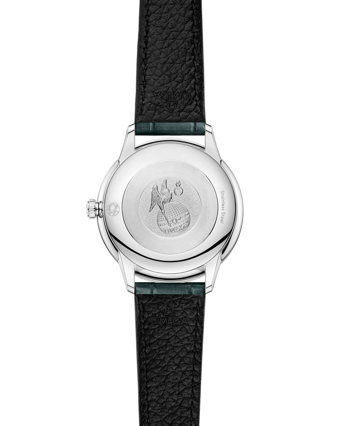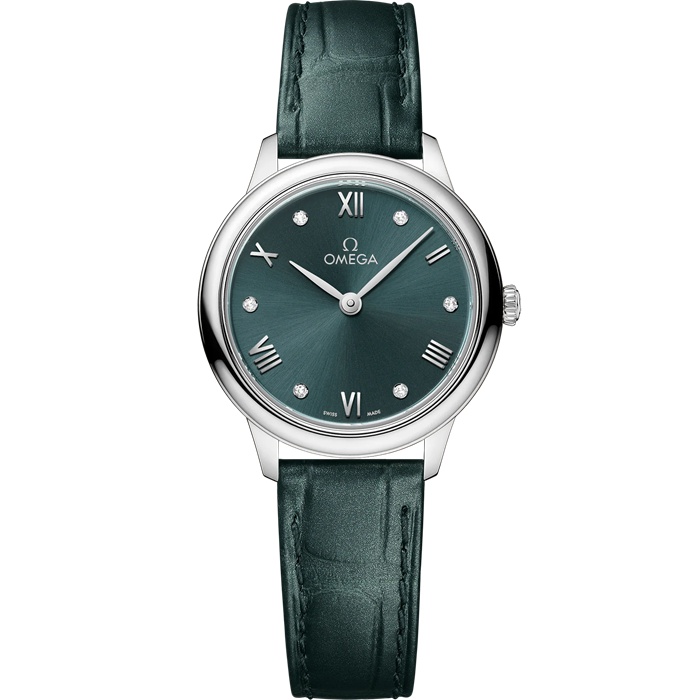 Neste modelo de 27,5 mm em aço inoxidável, o mostrador com PVD verde-pinho apresenta um acabamento escovado. O mostrador distingue-se pelos ponteiros revestidos a ródio, bem como pelos algarismos romanos alternados e os índices em diamante. O aspeto simples do relógio é completado por um fundo de caixa integral com uma gravação do medalhão do Deus Chronos.