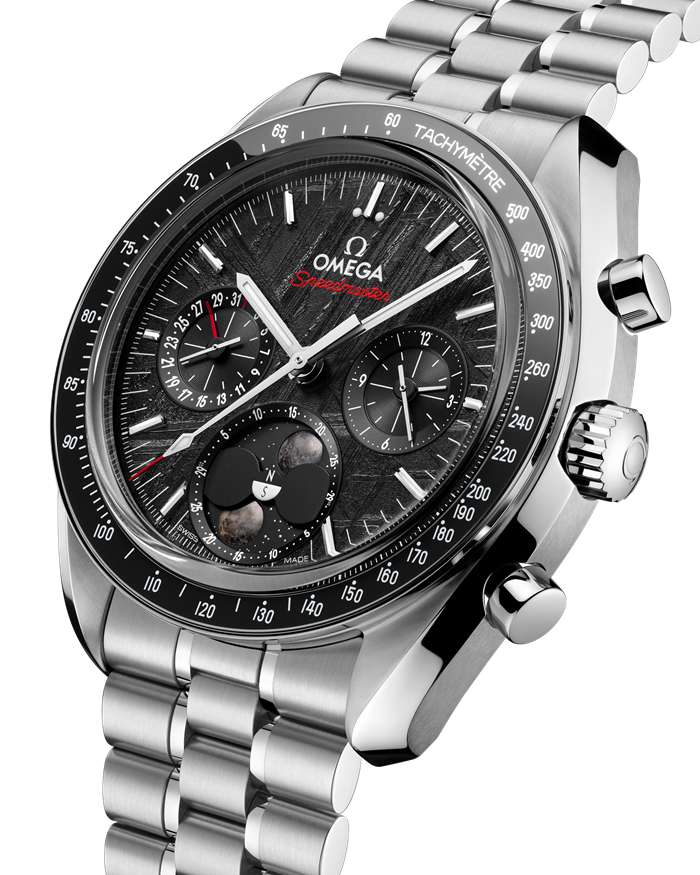 O Speedmaster é um dos relógios mais icónicos da OMEGA, tendo participado nas seis missões lunares. Com as suas duas luas feitas de meteorito lunar genuíno, este relógio Moonphase de 43,00 mm é um tributo impressionante a esse legado distinto.
