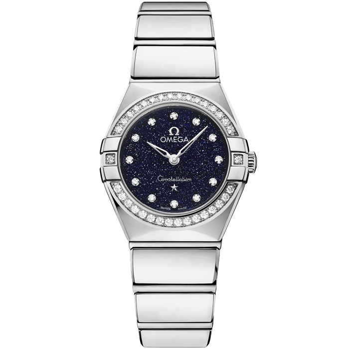 Este modelo de 25 mm é fabricado em aço inoxidável e inclui uma luneta com diamantes pavé. O cativante mostrador em vidro azul aventurina cria um efeito de noite estrelada, enquanto outros detalhes incluem ponteiros e estrela em ouro branco 18K polido e esqueletizado às seis horas, e marcadores de horas em diamante em ouro branco 18K polido.