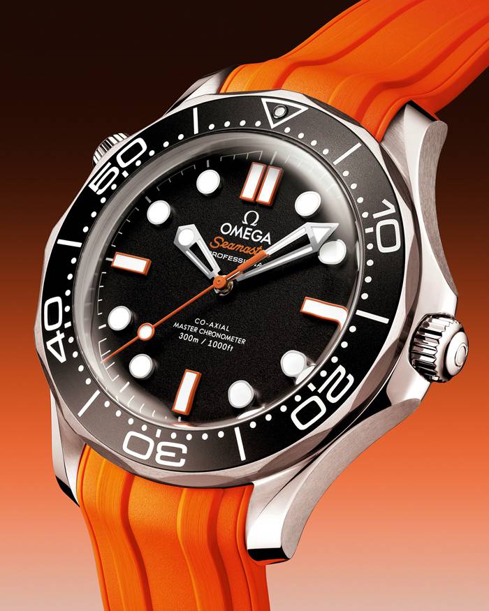 O mostrador, também em alumínio preto, apresenta ponteiros e índices esqueletizados revestidos a ródio, preenchidos com Super-LumiNova branca. A cor laranja é utilizada no ponteiro central dos segundos, nos índices que marcam cada quarto de hora e no nome Seamaster e o logótipo OMEGA é transferido em branco.