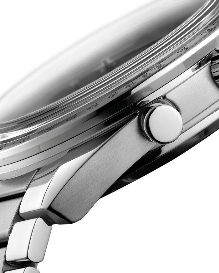 Este modelo de 40,50 mm, inspirado no lendário original de 1957, apresenta uma caixa em aço inoxidável e um mostrador preto com índices com reentrâncias com Super-LumiNova vintage na parte inferior. Para além dos ponteiros “Broad Arrow” revestidos a ródio, possui uma janela de data às 6 horas, um submostrador de pequenos segundos às 9 horas e contadores de cronógrafo de 12 horas e 60 minutos sobre o submostrador às 3 horas.