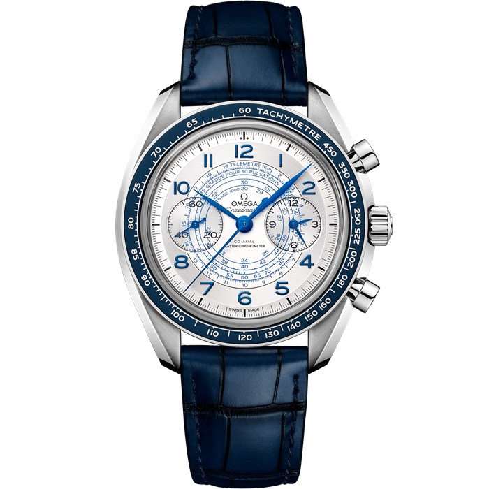 Este modelo de 43 mm foi criado em aço inoxidável com um mostrador prateado. Além da luneta em alumínio anodizado azul com a sua escala taquimétrica, os ponteiros em forma de folha e os algarismos árabes são também azulados, com um padrão de trajeto em “espiral” único que passa por baixo dos números.