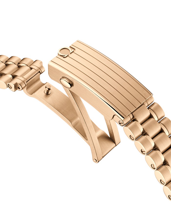 Inspirado no Speedmaster de 4.ª geração, este Moonwatch de 42 mm com caixa e bracelete em Ouro Moonshine™ de 18K apresenta um mostrador “step” com padrão escovado em Ouro Moonshine™ de 18K com índices e submostradores escurecidos. A luneta em cerâmica preta, com escala taquimétrica em OMEGA Ceragold™, apresenta o famoso ponto sobre o número 90.