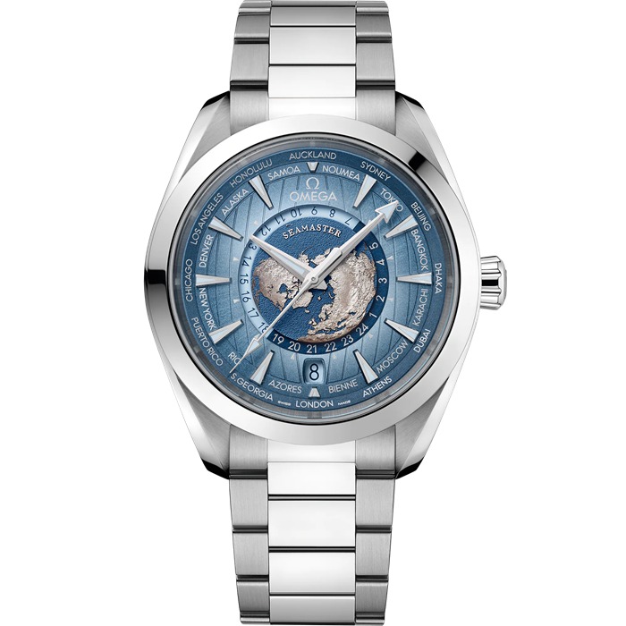 À volta do mostrador, encontra-se um círculo com destinos de todo o mundo estampados em prateado. O centro contém um aro de 24horas em vidro, com azul-claro para indicar o dia e azul-escuro para indicar a noite. Para a visão da Terra, que apresenta um oceano azul e os continentes em relevo, foi usada uma técnica de ablação a laser numa placa em titânio de grau 5.